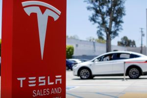 2/2 © Reuters. FILE PHOTO: Tesla Chief Executive Officer Elon Musk gets in a Tesla car as he leaves a…