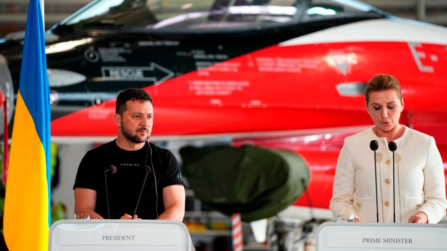 During a press conference with Zelenskyy at Skrydstrup air base in Denmark, Danish prime minister Mette Frederiksen said her country would donate 19 F-16s, which the Ukrainian president confirmed on social media.