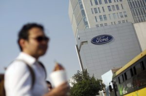 © Reuters. FILE PHOTO: A newly remodeled Ford F250 Super Duty truck is displayed at the new Louisville Ford truck…