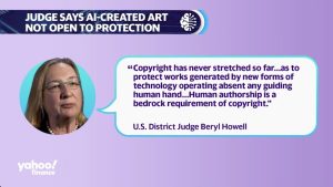AI-generated art not protected by copyright law, judge rules Videos September 7, 2023 12:44 am EDT Watch full video on YouTube